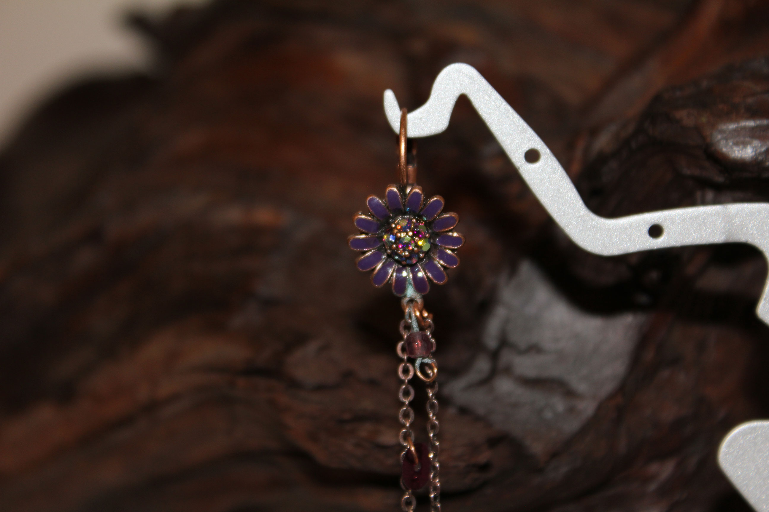 J0017 - Purple Flower Chain & Drop Earrings - New
