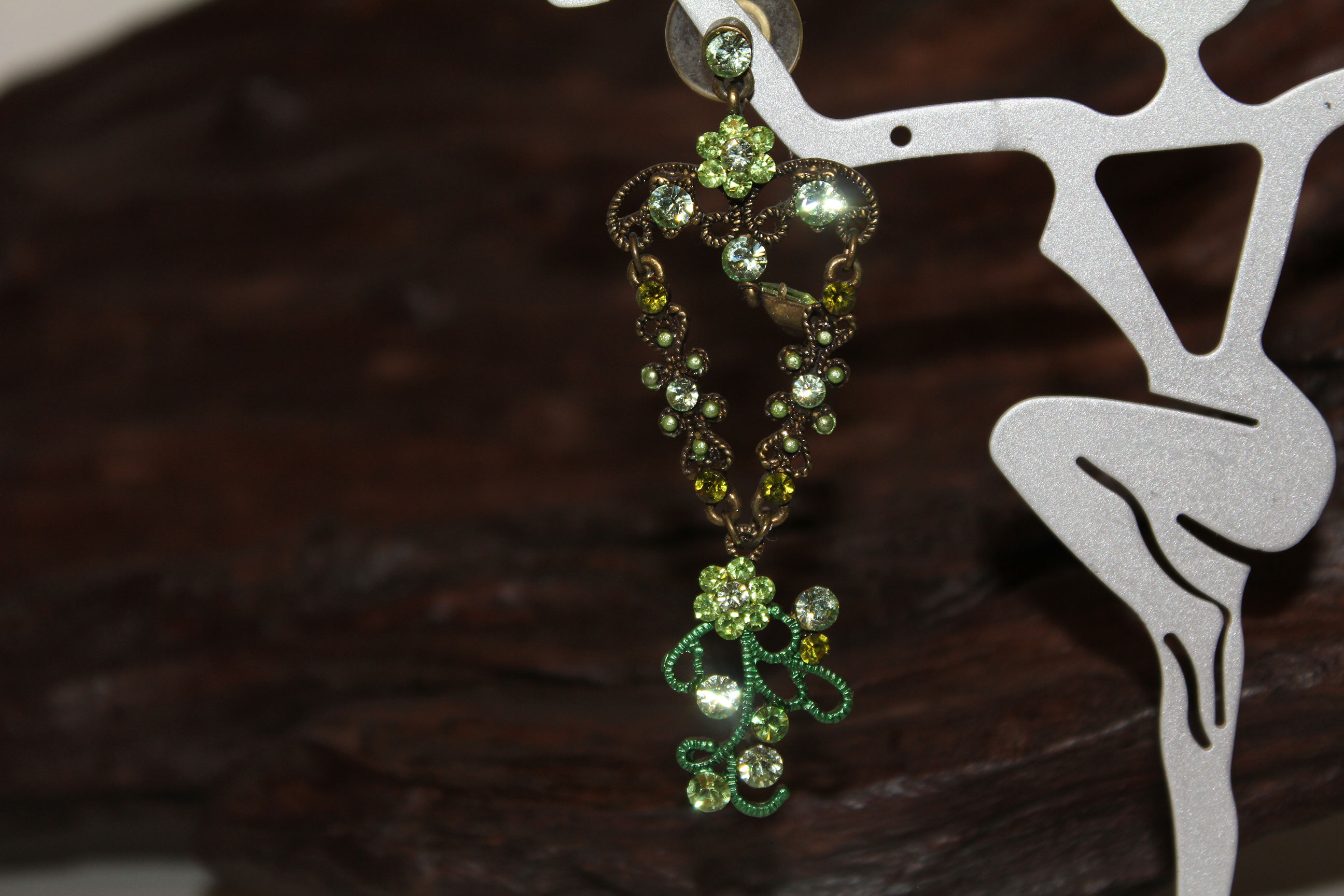 J0021 - Green Cluster Drop Earrings - Preowned